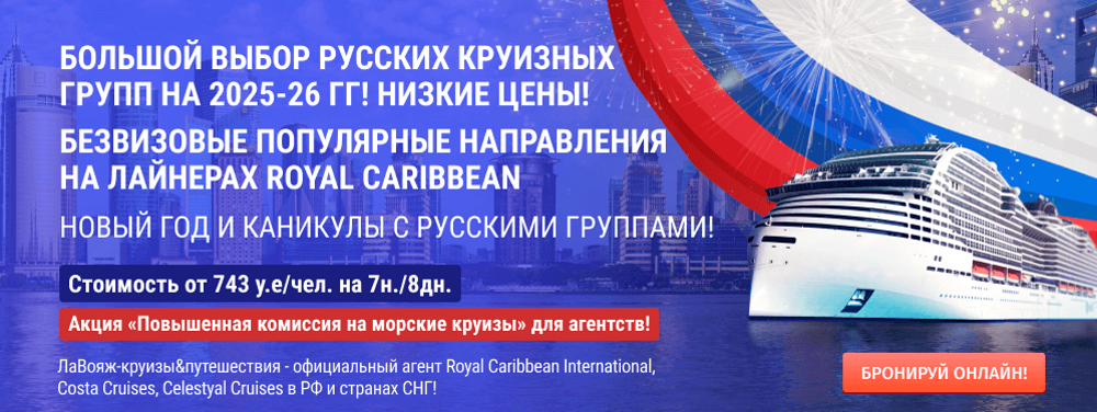 Компания «ЛаВояж-круизы&путешествия» является Гипермаркетом круизов и туров по всему миру, где можно легко с помощью инновационного онлайн поиска «Платформа бронирования индивидуальных туров и круизов» подобрать и забронировать в режиме реального времени за несколько шагов полноценный тур или туристическую услугу!