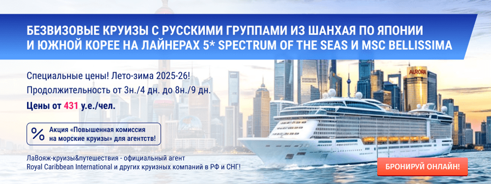и другим регионам мира самых популярных международных морских круизных компаний: Royal Caribbean International, MSC Cruises, Celestyal Cruises, Miray cruises, Aroya Cruises, Azamara, Celebrity Cruises, Variety cruises, Star Clippers, Ponant и речных круизных компаний: Мостурфлот, Гама, Водоход, Русич, Донинтурфлот, Созвездие, ВолгаWolga, Спутник-Гермес, Белый Лебедь, Волга Dream, Кама Трэвел, Цезарь, Волга-Плёс, Истлэнд, Ленатурфлот, Речфлот, Movenpick Nile Cruisers, Steigenberger Nile, Sonesta Cruise Collection, The Oberoi Nile Cruiser, Chateau Lafayette Nile Cruise, Jaz Cruises, Pandaw, Чунцинская судоходная компания «Юйхун»,