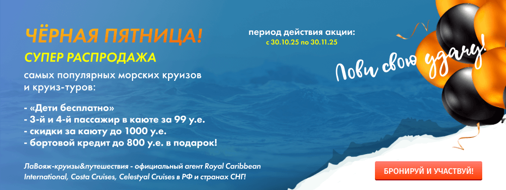 и другим регионам мира самых популярных международных морских круизных компаний:  Royal Caribbean InternationalMSC CruisesCelestyal CruisesMiray cruisesAroya Cruises, AzamaraCelebrity Cruises,  Variety cruisesStar ClippersPonant и речных круизных компаний: МостурфлотГамаВодоходРусичДонинтурфлотСозвездиеВолгаWolgaСпутник-ГермесБелый ЛебедьВолга DreamКама ТрэвелЦезарьВолга-ПлёсИстлэндЛенатурфлотРечфлотMovenpick Nile CruisersSteigenberger NileSonesta Cruise CollectionThe Oberoi Nile CruiserChateau Lafayette Nile CruiseJaz CruisesPandawЧунцинская судоходная компания «Юйхун»,