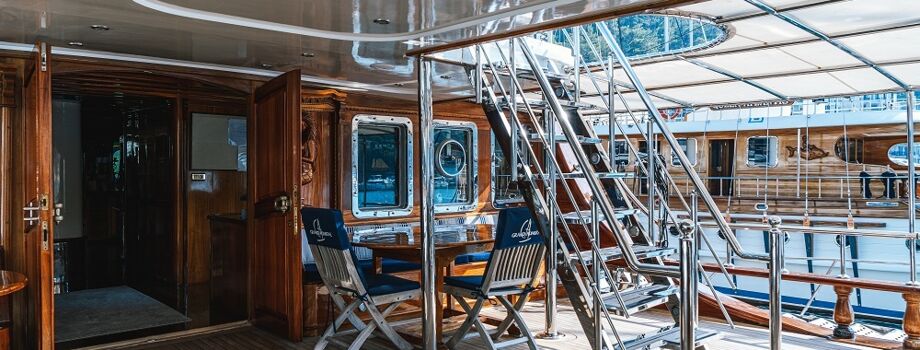 «Гранд Адмирал» - элегантная 67-метровая трехмачтовая яхта с высотой мачт 36 метров, и осадкой более четырех метров. «Гранд Адмирал» может ходить как под парусами, так и используя два мощных двигателя. Это одно из самых экологичных судов турецкого побережья, оборудованное специиальными системами переработки отходов и сточных вод. На яхте установлены современное навигационное оборудование и гидравлическая система управления парусами. На яхте есть две рулевых рубки – управление судном может осуществляться из любой из них. Судно полностью выполнено из тика, а винтажные элементы декора, лакированная старинная мебель и медные оттенки в дизайне создают незабываемое тонкое ощущение роскоши и уюта. Wi-Fi на борту оплачивается дополнительно.
