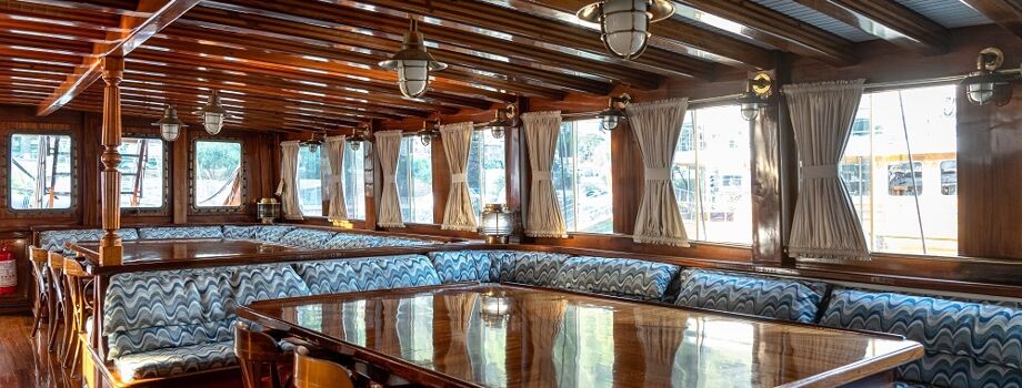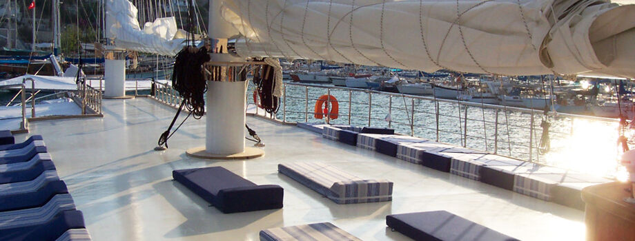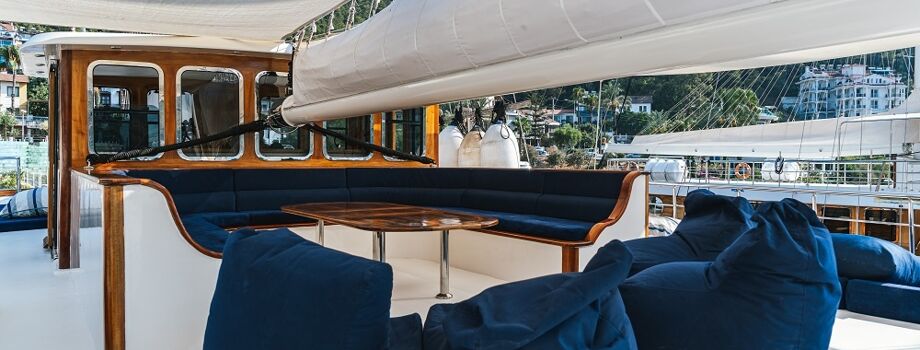 - 2 зоны отдыха на второй палубе – зона отдыха с удобными обеденными столами в носовой части яхты – идельное место, чтобы позавтракать или поужинать с видом на море. На удобных диванах в кормовой части можно расслабиться, слушая плеск морских волн.