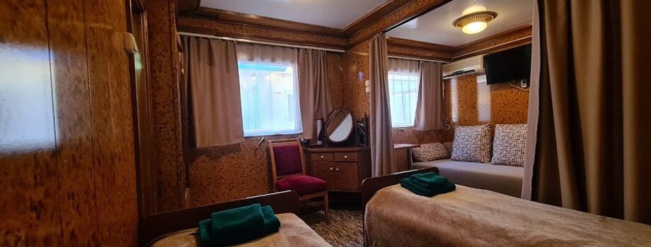 На теплоходе «Урал» есть двухместные каюты категории «Люкс», «Полулюкс», «Комфорт», «Стандарт» а также 1-, 2-, 3-, 4-местные каюты категории «Эконом». Все каюты комфортабельные, все (кроме кают категории «Эконом» без удобств либо с частичными удобствами (раковина) оснащены индивидуальным санблоком (душ, туалет, раковина), розеткой 220V, удобными кроватями. В каютах от категории «Стандарт» и выше есть холодильники, телевизоры, шкафы для одежды, зеркала, радио и кондиционеры.