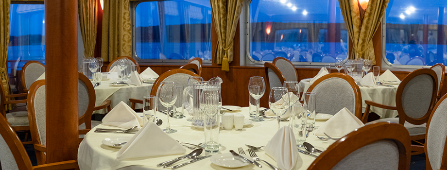 Единое европейское меню предлагается на всех теплоходах «Созвездия»: завтрак «шведский стол», обеды и ужины выбираются по меню. В течение круиза ни одно блюдо не повторяется. В баре - прохладительные и алкогольные напитки, закуски, салаты, горячие блюда и десерты. Рано утром, до завтрака, можно выпить чай или кофе, а на сам завтрак не обязательно идти в ресторан - можно заказать завтрак его в каюту.