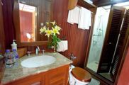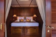 в каюте дверь с панорамным окном и выходом на палубу, двуспальная кровать (при необходимости трансформируется в две односпальные кровати), ванная комната (раковина, душ, туалет), шкаф для одежды, ежедневное пополнение воды, кондиционер с индивидуальным управлением, фен, зеркало, банные халаты, тапочки, мини-сейф, розетки. Перед каждой каютой на палубе обустроена персональная зона отдыха с плетеными креслами.