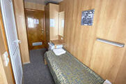 в однокомнатной каюте 4 окна, гостиная и спальня зоны, 2 раздельные кровати (№ 401, 402) или двуспальная кровать (№ 404, 406), двуспальный диван, шкаф, кондиционер, холодильник, радио, телевизор, эл.розетка, санузел (умывальник, душ, туалет). К данной категории относятся каюты № 401, 402, 404, 406.