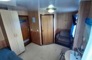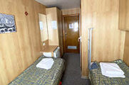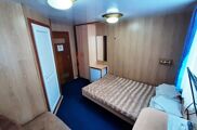 в 2-3-х местной каюте с окнами двуспальная кровать, кресло-кровать (№ 309, 403, 405) или диван (№ 333), шкаф, кондиционер, мини-холодильник, телевизор, радио, эл.розетка, санузел (умывальникк, душ, туалет).