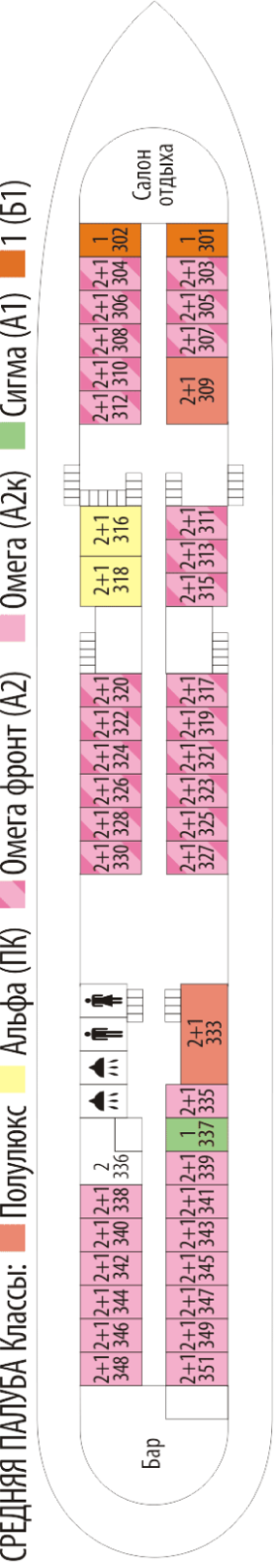 Все каюты категории OK6 обозначены на Плане палуб данным цветом.