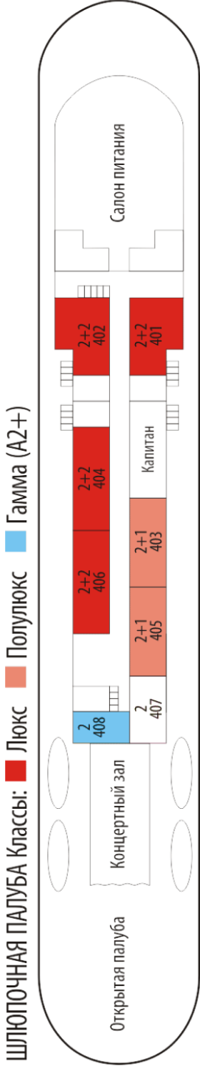 Все каюты категории LUX обозначены на Плане палуб данным цветом.
