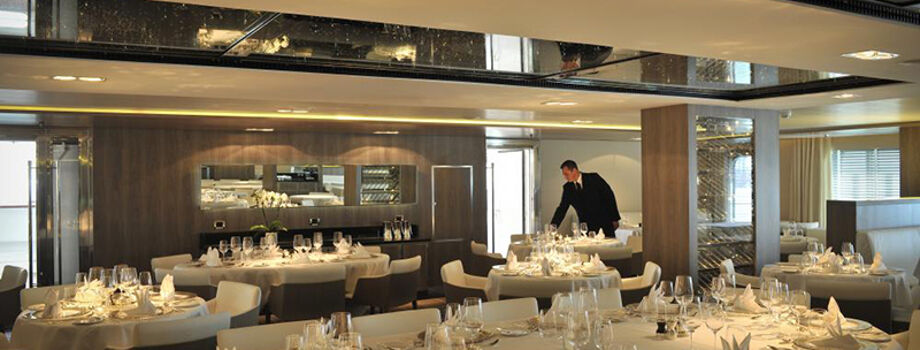 На борту круизного судна имеется два ресторана – основной, Gastronomic Restaurant, где подаются блюда высокой французской и интернациональной кухонь и лучшие вина, и Grill Restaurant, где сервируются завтраки, обеды и тематические ужины, а часть столиков расположена на открытом воздухе. Для маленьких путешественников компания разработала специальное детское меню. По запросу также возможно диетическое и вегетарианское меню.