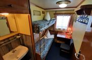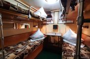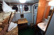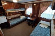 в каюте окно, односпальная кровать, умывальник с горячей и холодной водой, шкаф для одежды, радио, электрическая розетка. Каюты расположены на шлюпочной палубе (№ 9-12).