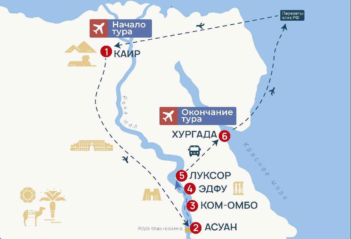 Круизы по Египту, 7 ночей. Круиз из порта Каир, Египет в порт Хургада, Египет