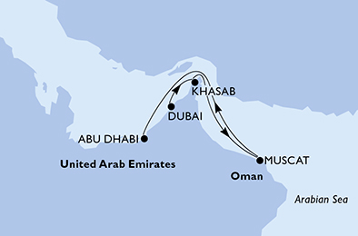 ОАЭ / Персидский залив. Начните незабываемый морской круиз 07.03.2026 с Aroya Cruises на борту лайнера Aroya. Начало путешествия 07.03.2026 из порта Дубай, ОАЭ. За 4 ночи вы насладитесь высоким уровнем сервиса, комфортом и атмосферой настоящего морского приключения. За это время вы посетите Эль-Хасаб, Оман и Маскат, Оман, прежде чем завершить круиз в порту Абу-Даби, ОАЭ 11.03.2026. кухня, развлечения на борту и фирменное качество Aroya Cruises сделают ваше путешествие ярким и запоминающимся.