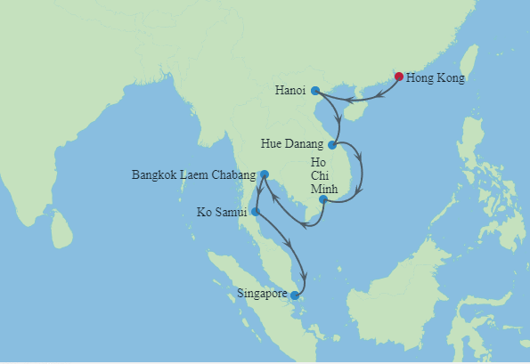 Азия, 11 ночей Круиз из порта Гонконг, Китай в порт Сингапур, Сингапур