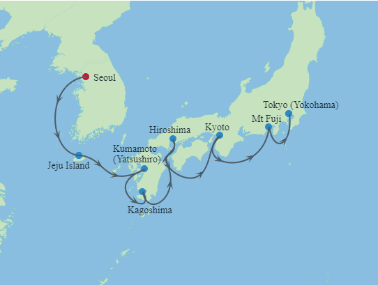 Япония / Корея, 12 ночей Круиз из порта Инчхон (Сеул), Южная Корея в порт Иокогама (Токио), Япония