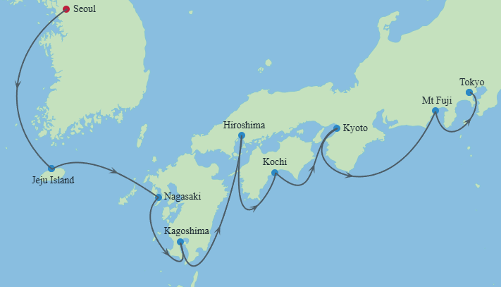 Япония / Корея, 12 ночей Круиз из порта Инчхон (Сеул), Южная Корея в порт Токио, Япония