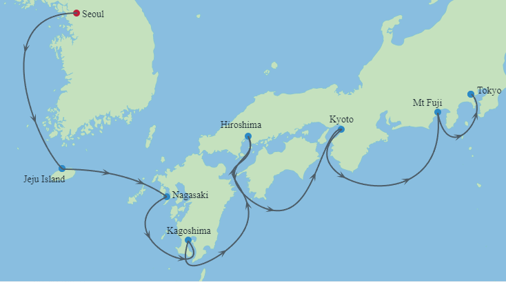 Япония / Корея, 12 ночей Круиз из порта Инчхон (Сеул), Южная Корея в порт Токио, Япония