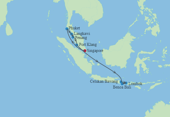 Азия Юго-Восточная, 12 ночей Круиз из порта Сингапур, Сингапур в порт Беноа (Денпасар), о.Бали, Индонезия