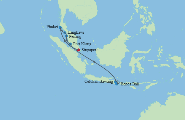Маршрут тоже более чем прекрасный: 2 дня в Сингапуре, 2 дня на Бали, 2 порта Малайзии, Пхукет!