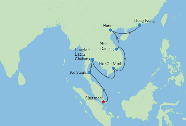 Азия, 15 ночей Круиз из порта Сингапур, Сингапур в порт Гонконг, Китай