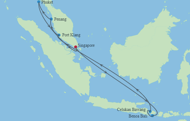 Маршрут тоже более чем прекрасный: 2 дня в Сингапуре, 2 дня на Бали, 2 порта Малайзии, Пхукет!