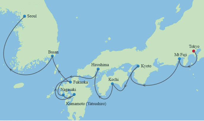 Япония / Корея, 13 ночей Круиз из порта Токио, Япония в порт Инчхон (Сеул), Южная Корея