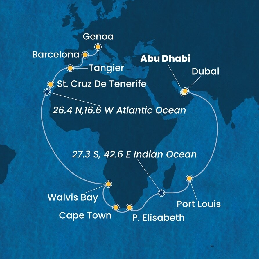 Африка Атлантическое побережье, 35 ночей Круиз из порта Абу-Даби, ОАЭ в порт Генуя, Италия
