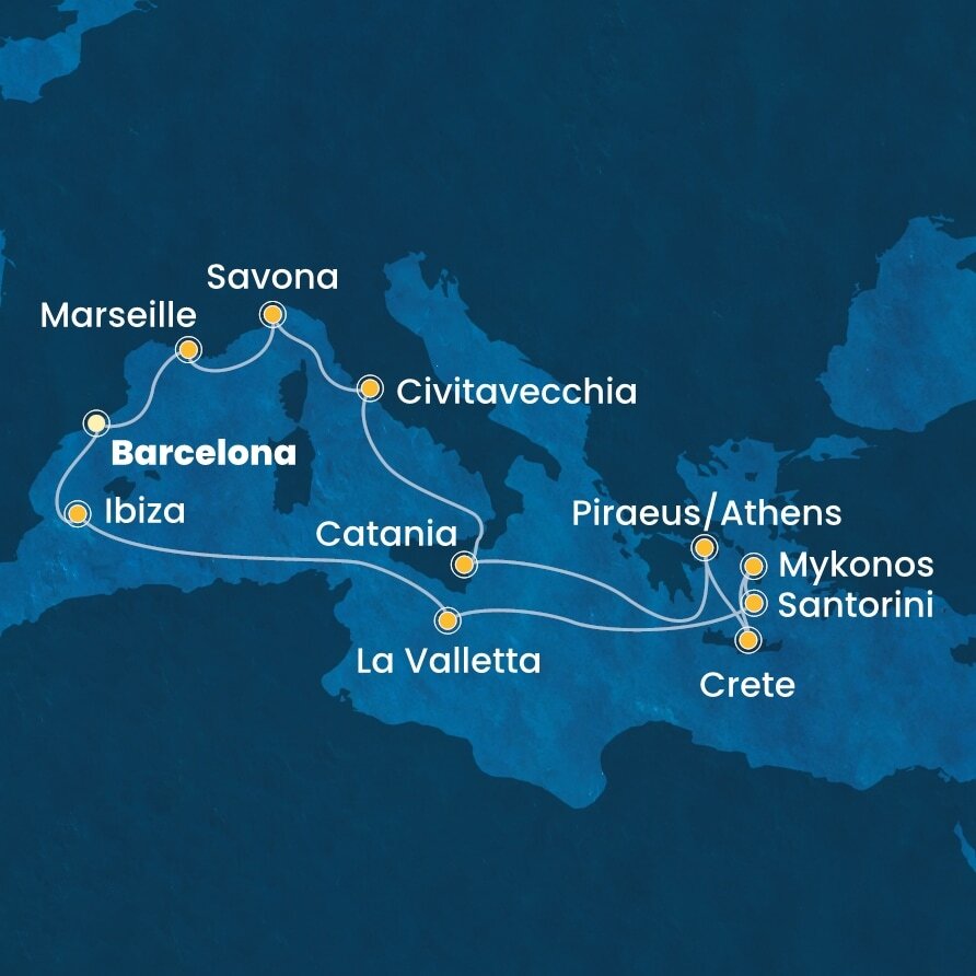 Греческие острова / Средиземноморье, 14 ночей Круиз из порта Барселона, Испания в порт Барселона, Испания