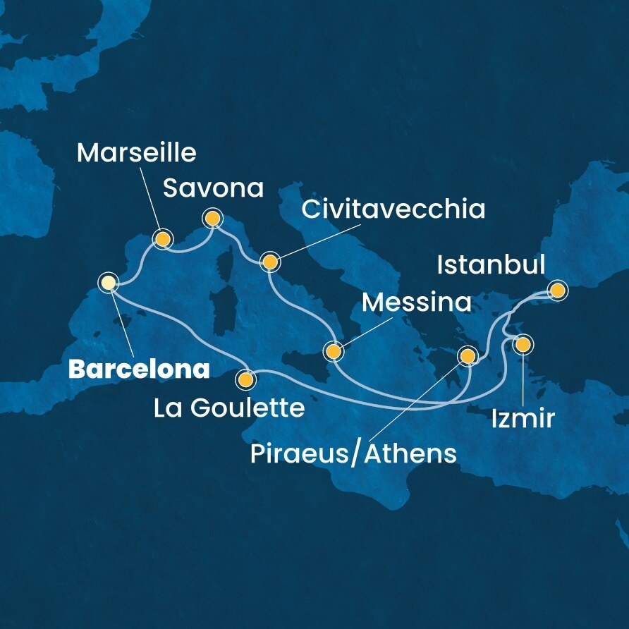 Средиземноморье, 14 ночей Круиз из порта Барселона, Испания в порт Барселона, Испания