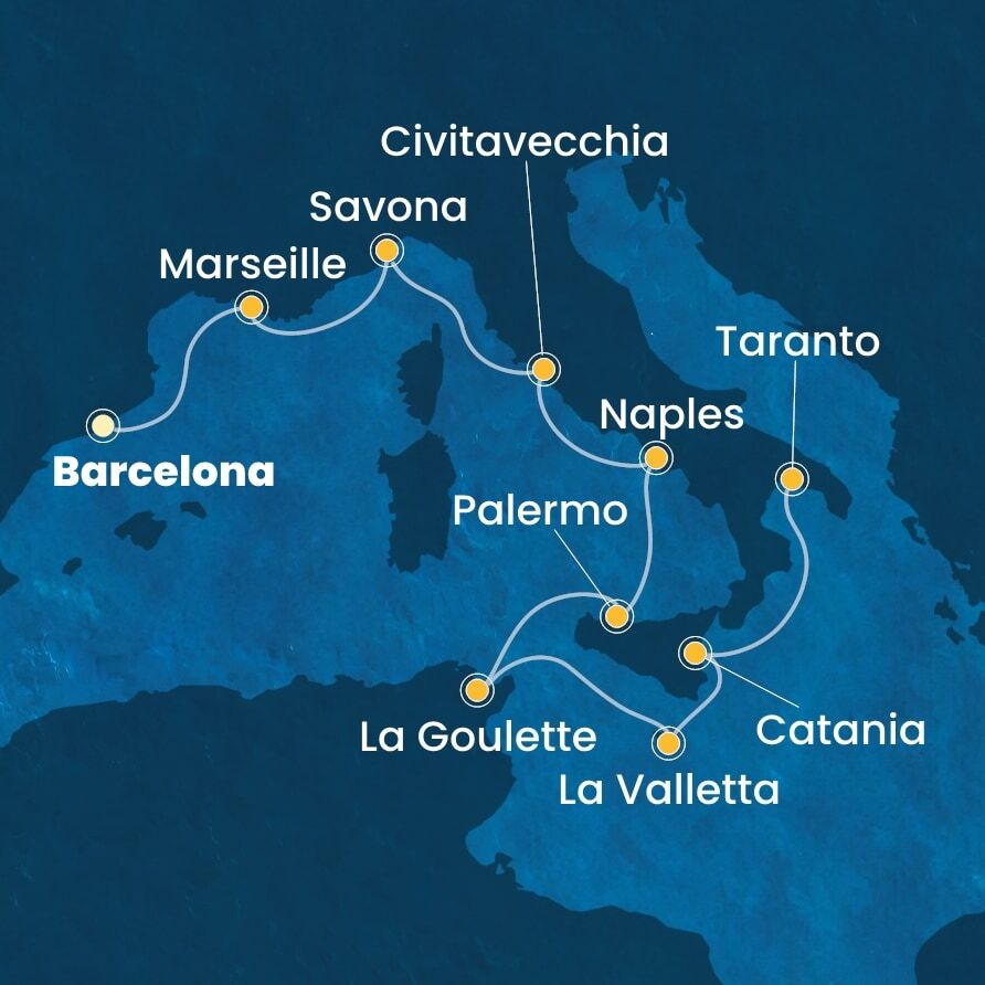 Средиземноморье, 9 ночей Круиз из порта Барселона, Испания в порт Таранто, Италия