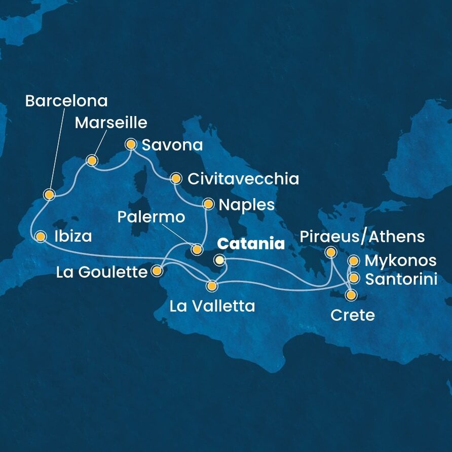 Греческие острова / Средиземноморье, 18 ночей Круиз из порта Катания, о. Сицилия, Италия в порт Катания, о. Сицилия, Италия
