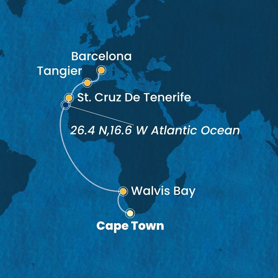 Африка Атлантическое побережье, 18 ночей Круиз из порта Кейптаун, ЮАР в порт Барселона, Испания