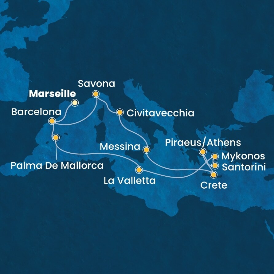 Греческие острова / Средиземноморье, 16 ночей Круиз из порта Марсель, Франция в порт Марсель, Франция