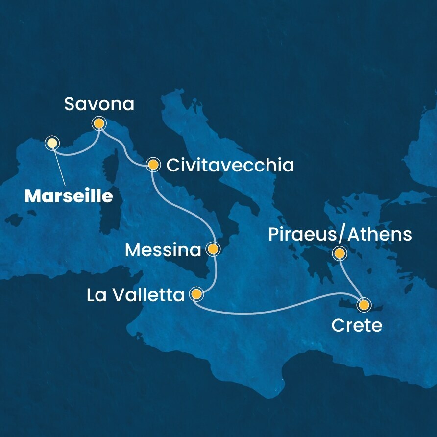 Средиземноморье, 7 ночей Круиз из порта Марсель, Франция в порт Пирей, Афины, Греция