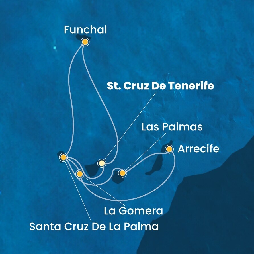 Канарские острова, 7 ночей Круиз из порта Санта-Крус-де-Тенерифе, о. Тенерифе, Испания в порт В море