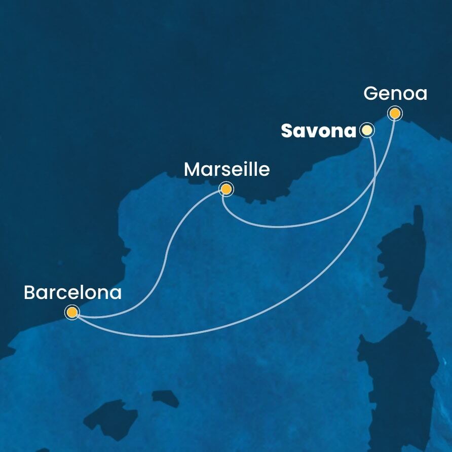 Средиземноморье Западное, 4 ночи Круиз из порта Савона, Италия в порт Савона, Италия