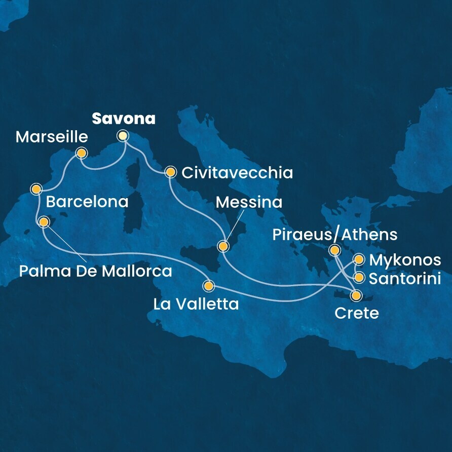 Греческие острова / Средиземноморье, 14 ночей Круиз из порта Савона, Италия в порт Савона, Италия