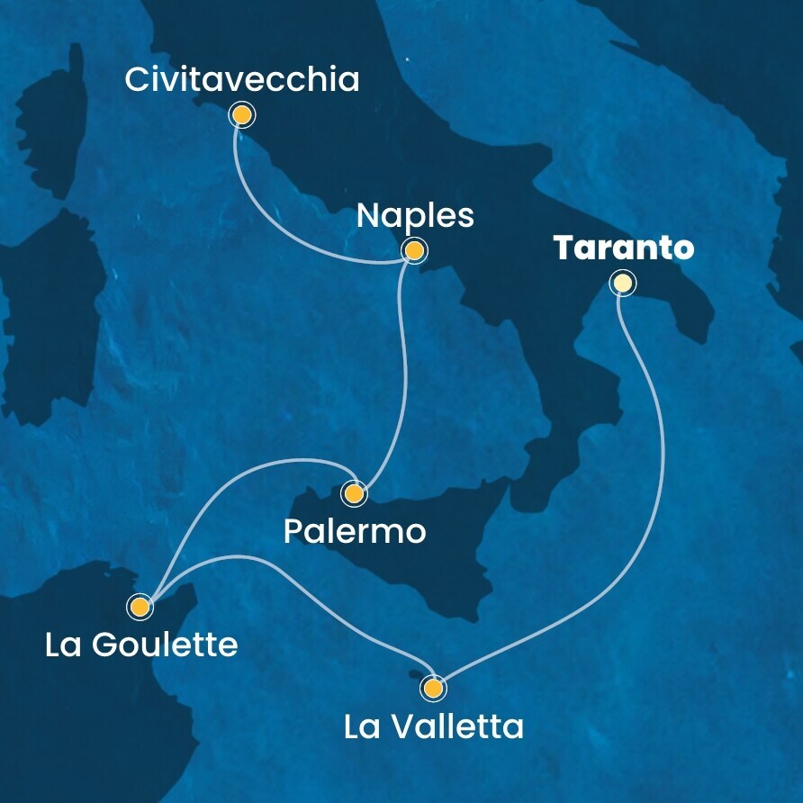 Средиземноморье, 5 ночей Круиз из порта Таранто, Италия в порт Чивитавеккья (Рим), Италия