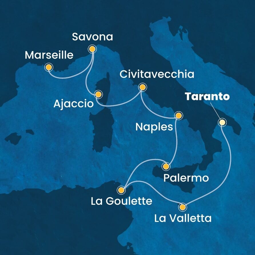 Средиземноморье, 8 ночей Круиз из порта Таранто, Италия в порт Марсель, Франция