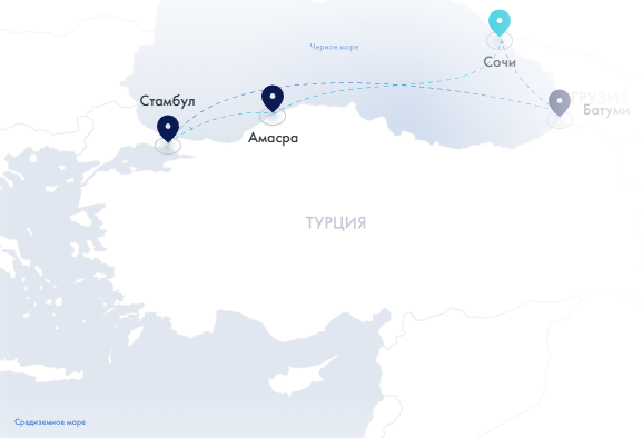 Из Сочи в Турцию. Начните незабываемый Восхитительный морской круиз 21.11.2026 с Miray Cruises на борту лайнера Astoria Grande. Начало путешествия 21.11.2026 из порта Сочи, Россия. За 7 ночей вы насладитесь высоким уровнем сервиса, комфортом и атмосферой настоящего морского приключения. За это время вы посетите Батуми, Грузия и Стамбул, Турция, прежде чем завершить круиз в порту Сочи, Россия 28.11.2026. Сбалансированная кухня, развлечения на борту и фирменное качество Miray Cruises сделают ваше путешествие ярким и запоминающимся.