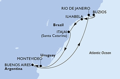 Южная Америка. Начните незабываемый Роскошный морской круиз 17.02.2026 с MSC Cruises на борту лайнера MSC Fantasia. Начало путешествия 17.02.2026 из порта Буэнос Айрес, Аргентина. За 9 ночей вы насладитесь высоким уровнем сервиса, комфортом и атмосферой настоящего морского приключения. За это время вы посетите Бузиус, Бразилия и Ильябела, Бразилия, прежде чем завершить круиз в порту Буэнос Айрес, Аргентина 26.02.2026. Тонкая кухня, развлечения на борту и фирменное качество MSC Cruises сделают ваше путешествие ярким и запоминающимся.