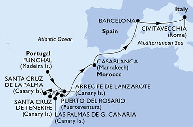Канарские острова, 13 ночей Круиз из порта Фуншал, о.Мадейра, Португалия в порт Чивитавеккья (Рим), Италия