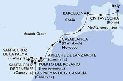 Европа, 10 ночей Круиз из порта Лас-Пальмас-де-Гран-Канария, о. Гран-Канария, Испания в порт Чивитавеккья (Рим), Италия