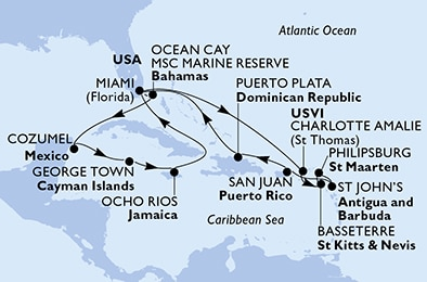 Карибы. Начните незабываемый Очаровательный морской круиз 15.01.2026 с MSC Cruises на борту лайнера MSC Divina. Начало путешествия 15.01.2026 из порта Майами, США. За 17 ночей вы насладитесь высоким уровнем сервиса, комфортом и атмосферой настоящего морского приключения. За это время вы посетите Сент-Джонс, Антигуа и Амбер Коув, Доминиканская Республика, прежде чем завершить круиз в порту Майами, США 01.02.2026. Авторская кухня, развлечения на борту и фирменное качество MSC Cruises сделают ваше путешествие ярким и запоминающимся.