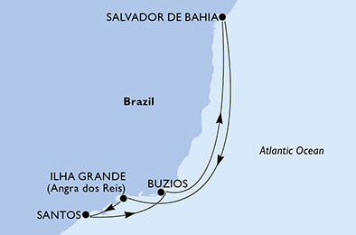 Южная Америка. Начните незабываемый Элегантный морской круиз 13.12.2025 с MSC Cruises на борту лайнера MSC Seaview. Начало путешествия 13.12.2025 из порта Сантос (Сан-Паулу), Бразилия. За 6 ночей вы насладитесь высоким уровнем сервиса, комфортом и атмосферой настоящего морского приключения. За это время вы посетите Бузиус, Бразилия и Сальвадор Де Байа, Бразилия, прежде чем завершить круиз в порту Сантос (Сан-Паулу), Бразилия 19.12.2025. Тонкая кухня, развлечения на борту и фирменное качество MSC Cruises сделают ваше путешествие ярким и запоминающимся.