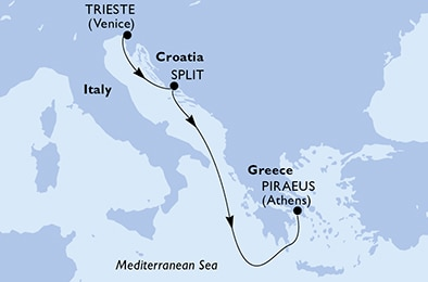 Европа Южная, 3 ночи Круиз из порта Триест, Италия в порт Пирей, Афины, Греция